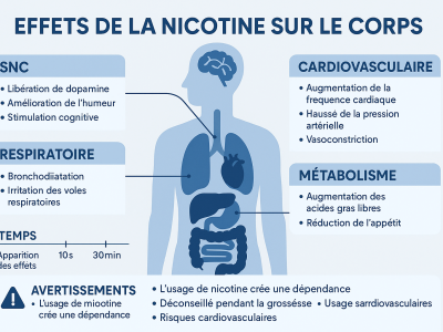 Effet de la Nicotine sur le Corps – Guide Complet Read more... Nicotine Effets Positifs : Quels sont les Effets sur la Santé Read more... Combien de Temps la Nicotine Reste dans le Sang? Read more... Surdosage Nicotine: Symptômes, Comment Éviter et Prévention Complète Read more...